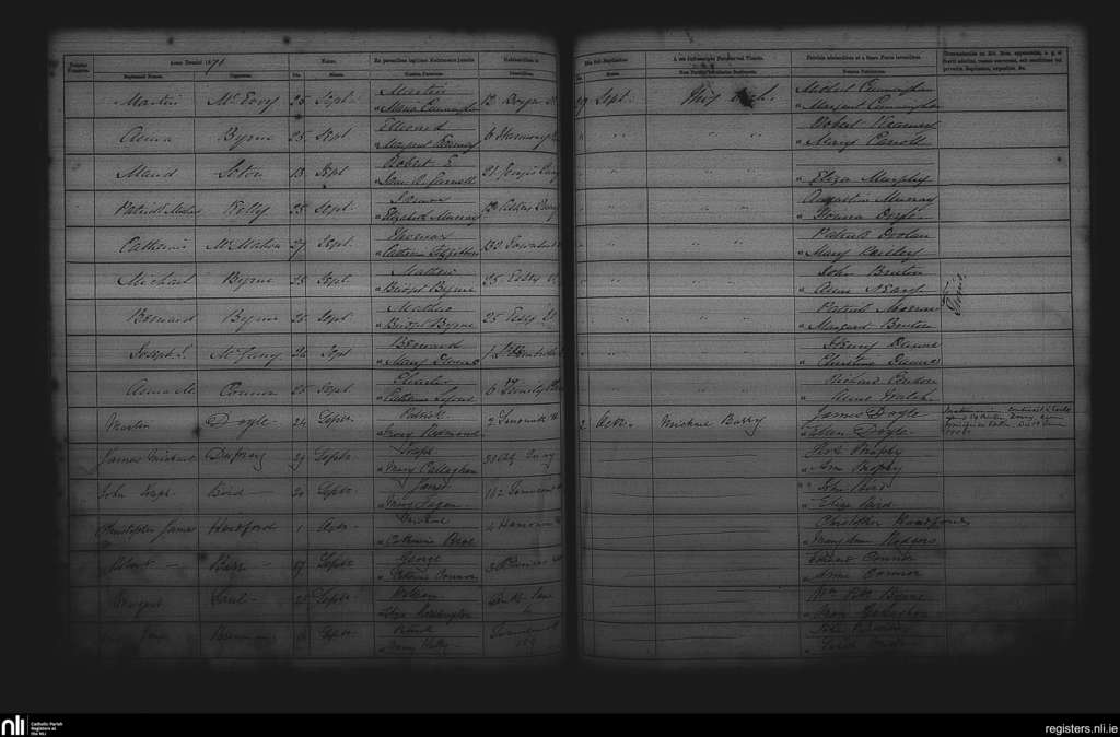 St. Andrew's, Dublin city; County of Dublin; Archdiocese of Dublin. Baptisms, Sep. 1871 to Oct. 1871