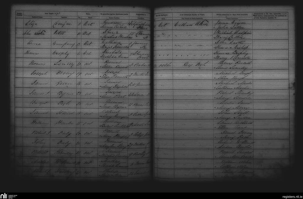 St. Andrew's, Dublin city; County of Dublin; Archdiocese of Dublin. Baptisms, Oct. 1871