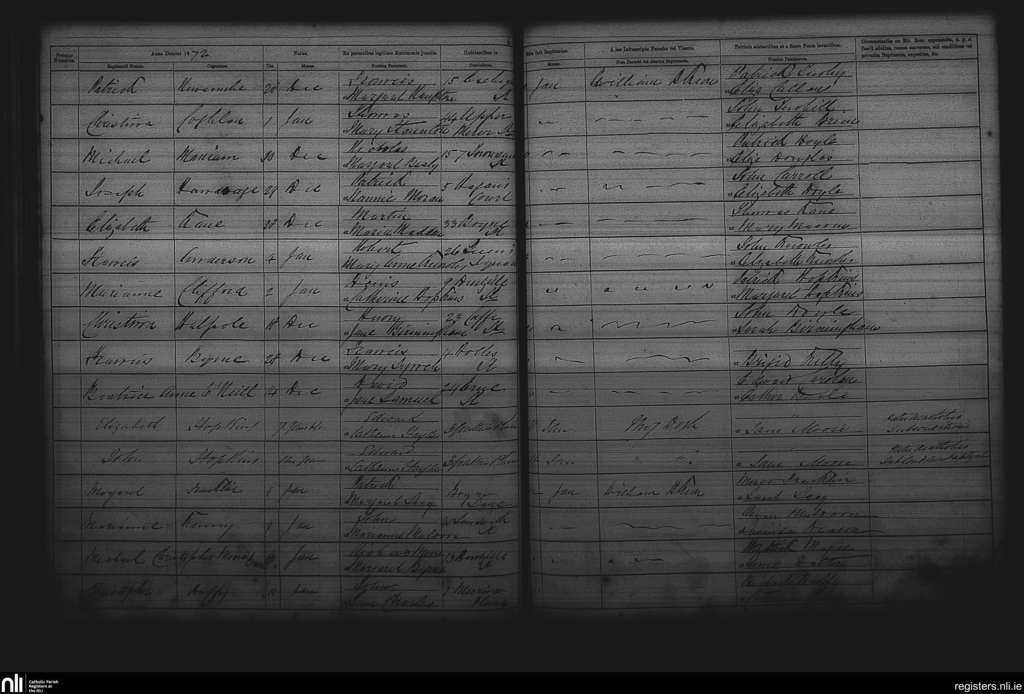 St. Andrew's, Dublin city; County of Dublin; Archdiocese of Dublin. Baptisms, Jan. 1872