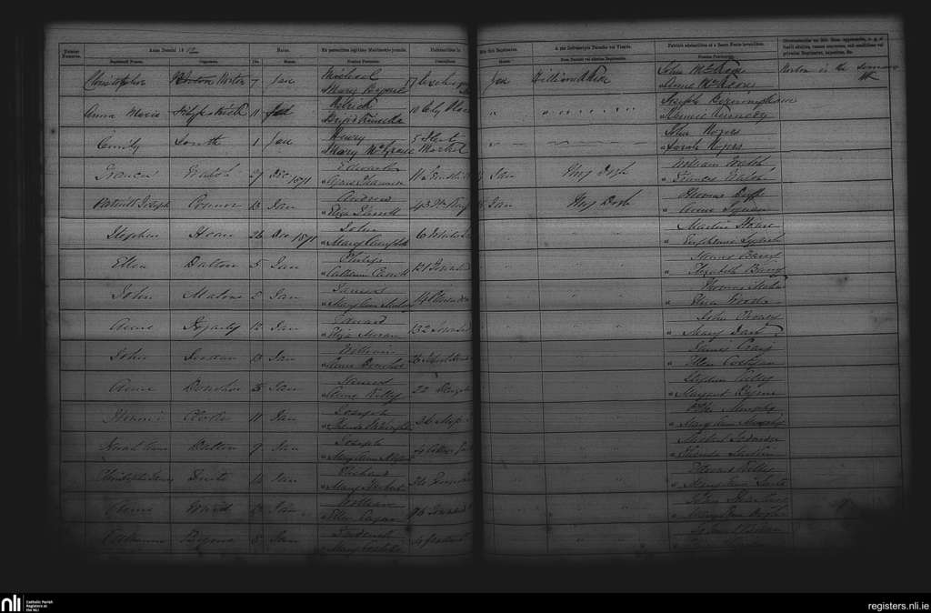 St. Andrew's, Dublin city; County of Dublin; Archdiocese of Dublin. Baptisms, Jan. 1872
