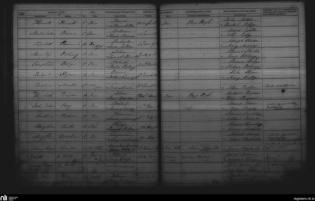 St. Andrew's, Dublin city; County of Dublin; Archdiocese of Dublin. Baptisms, Dec. 1871 to Jan. 1872