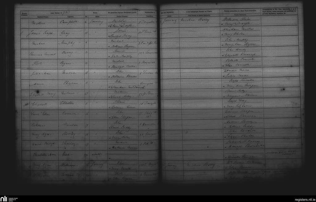St. Andrew's, Dublin city; County of Dublin; Archdiocese of Dublin. Baptisms, Jan. 1872