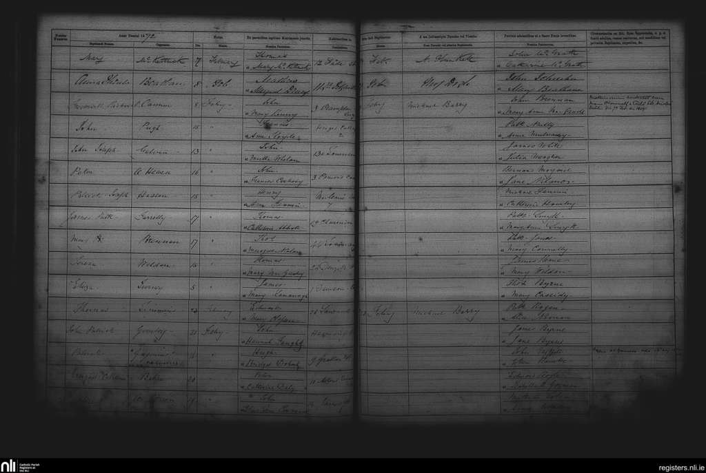 St. Andrew's, Dublin city; County of Dublin; Archdiocese of Dublin. Baptisms, Feb. 1872