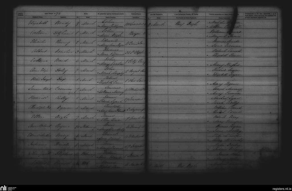 St. Andrew's, Dublin city; County of Dublin; Archdiocese of Dublin. Baptisms, Mar. 1872