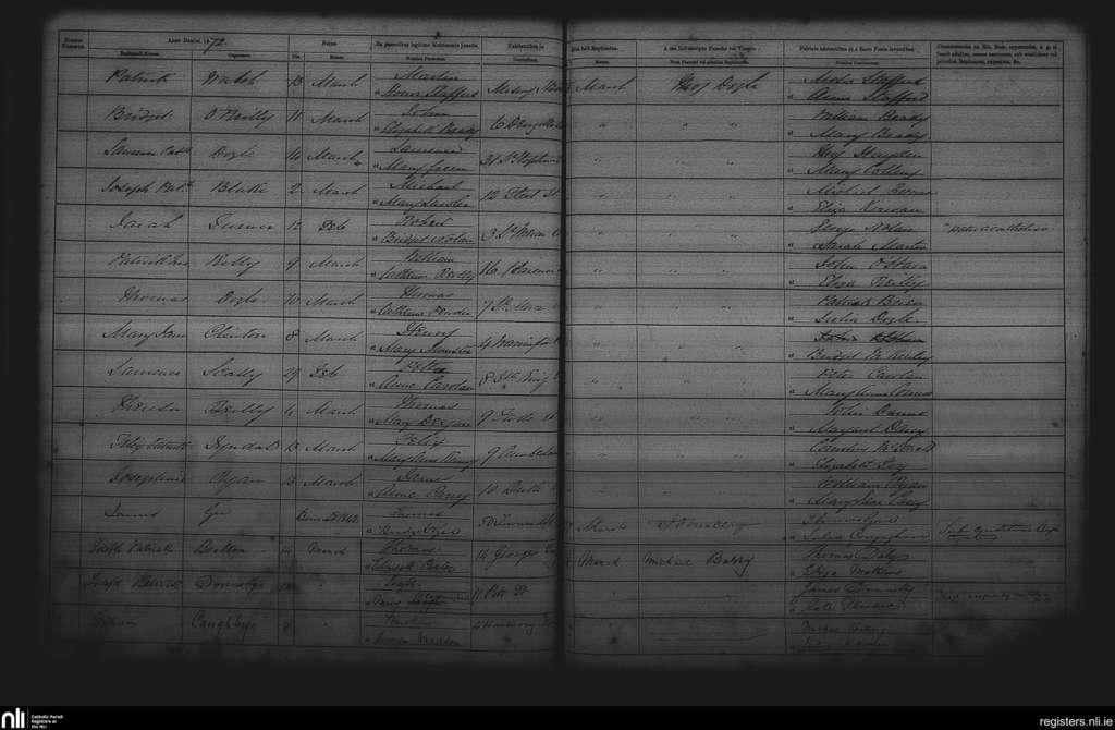 St. Andrew's, Dublin city; County of Dublin; Archdiocese of Dublin. Baptisms, Mar. 1872
