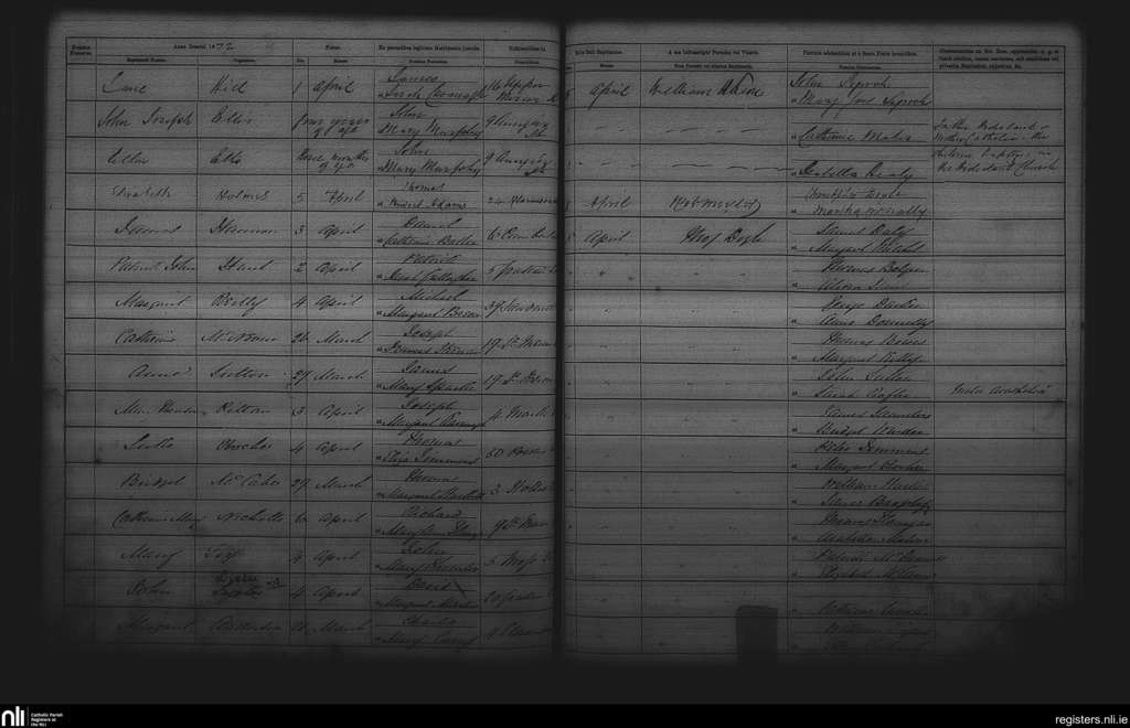 St. Andrew's, Dublin city; County of Dublin; Archdiocese of Dublin. Baptisms, Apr. 1872