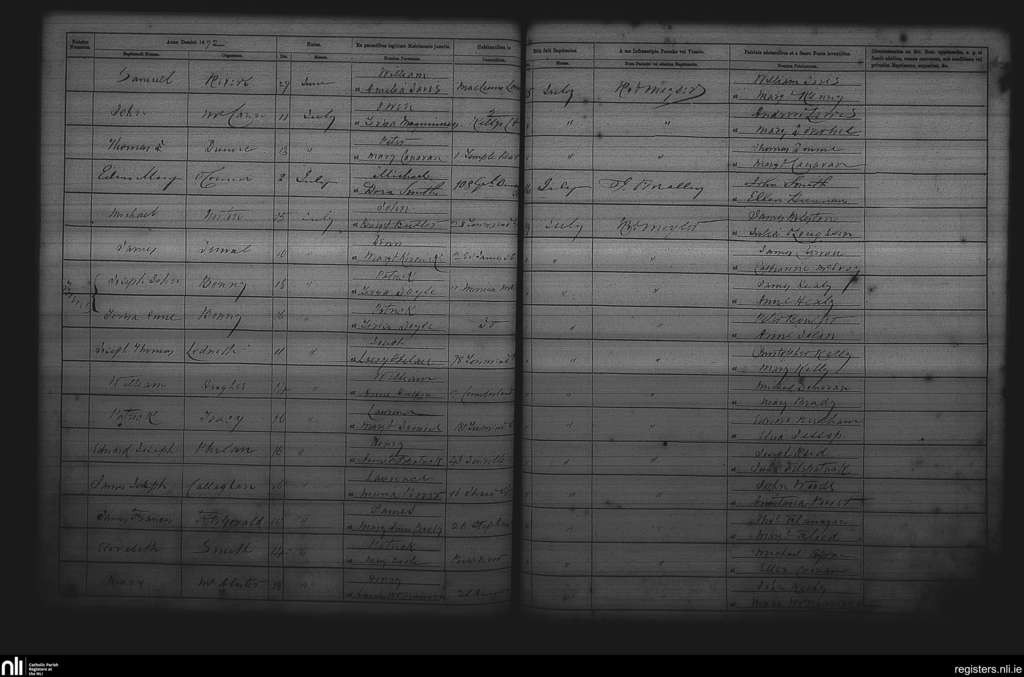 St. Andrew's, Dublin city; County of Dublin; Archdiocese of Dublin. Baptisms, July 1872