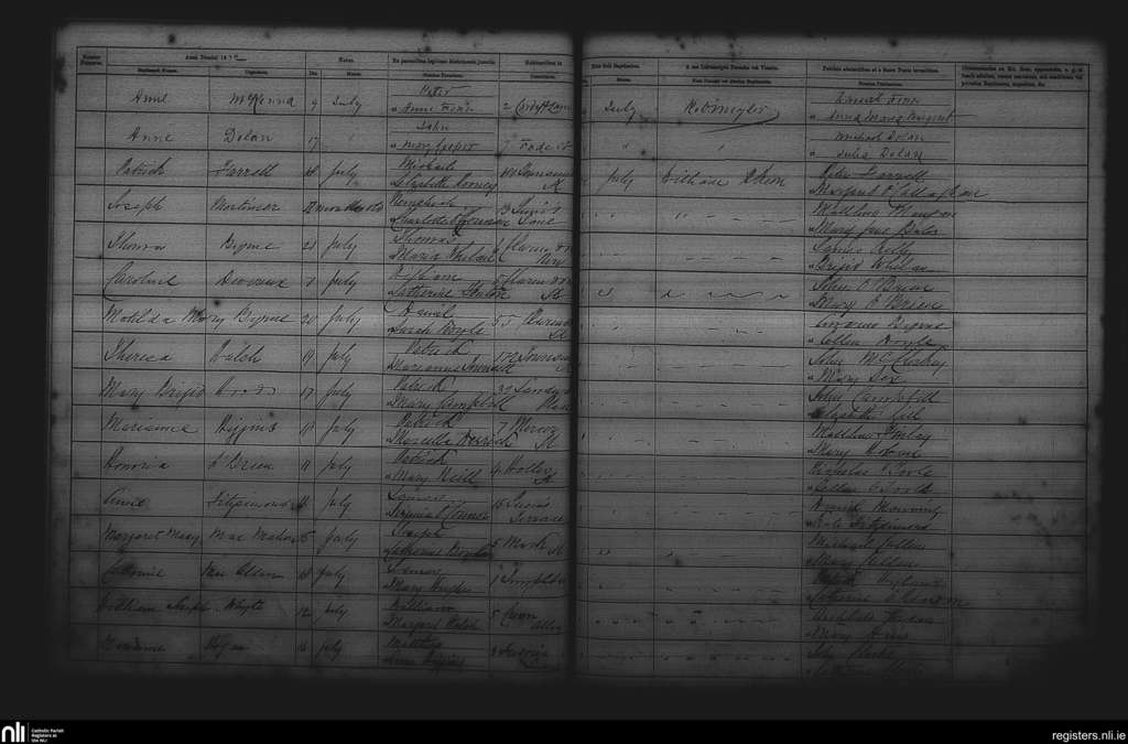 St. Andrew's, Dublin city; County of Dublin; Archdiocese of Dublin. Baptisms, July 1872