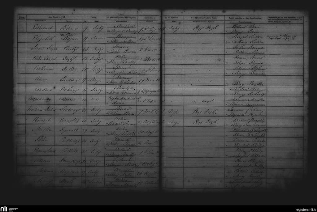 St. Andrew's, Dublin city; County of Dublin; Archdiocese of Dublin. Baptisms, July 1872 to Aug. 1872