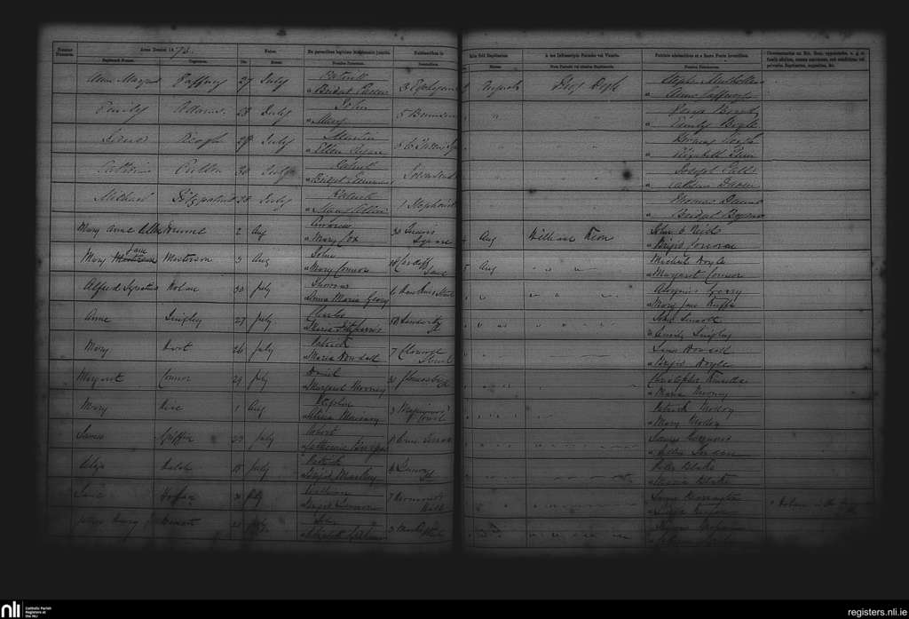 St. Andrew's, Dublin city; County of Dublin; Archdiocese of Dublin. Baptisms, Aug. 1872