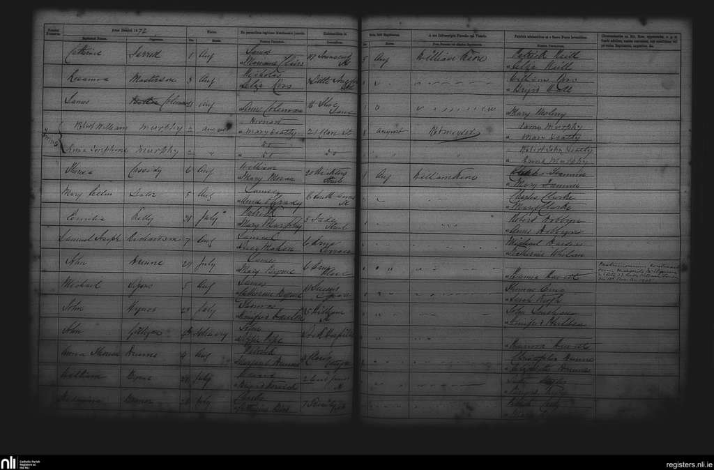 St. Andrew's, Dublin city; County of Dublin; Archdiocese of Dublin. Baptisms, Aug. 1872
