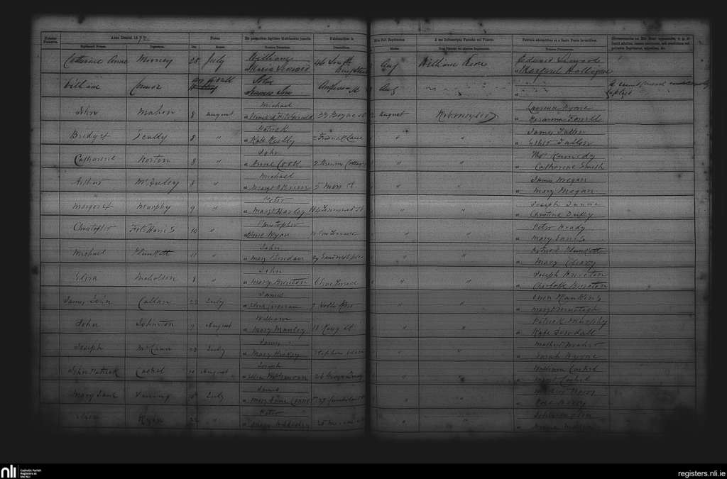 St. Andrew's, Dublin city; County of Dublin; Archdiocese of Dublin. Baptisms, Aug. 1872