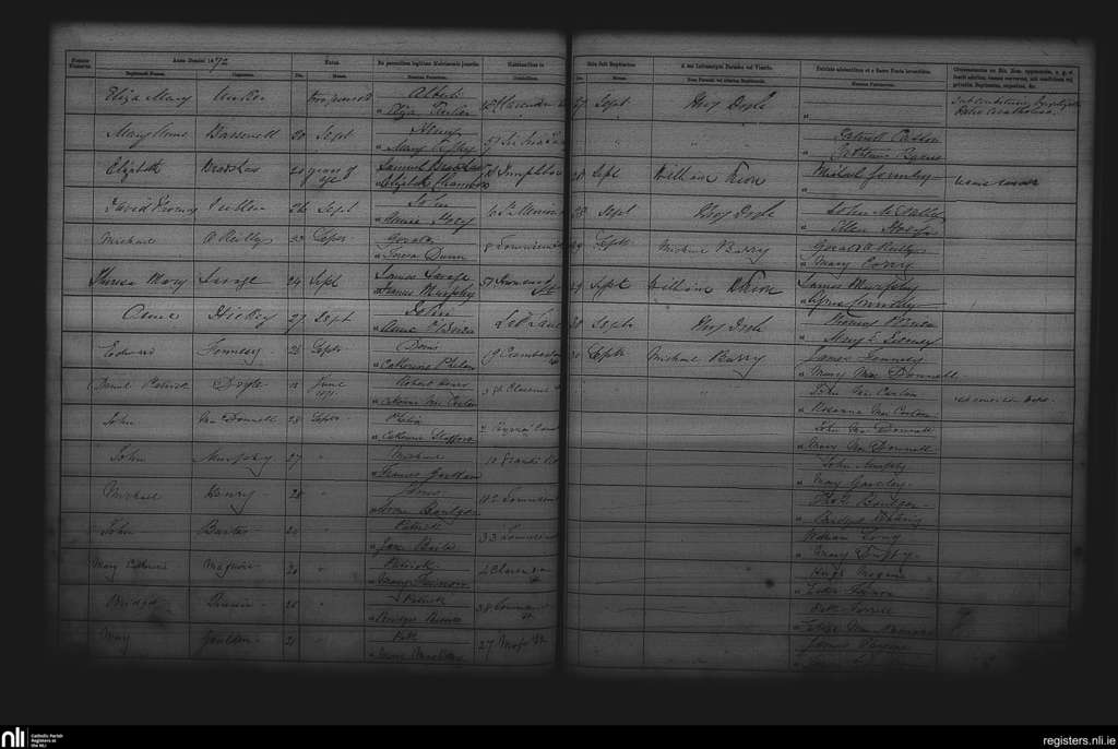 St. Andrew's, Dublin city; County of Dublin; Archdiocese of Dublin. Baptisms, Sep. 1872
