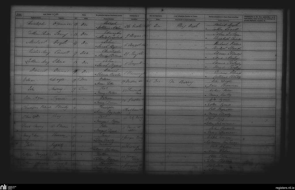 St. Andrew's, Dublin city; County of Dublin; Archdiocese of Dublin. Baptisms, Dec. 1872