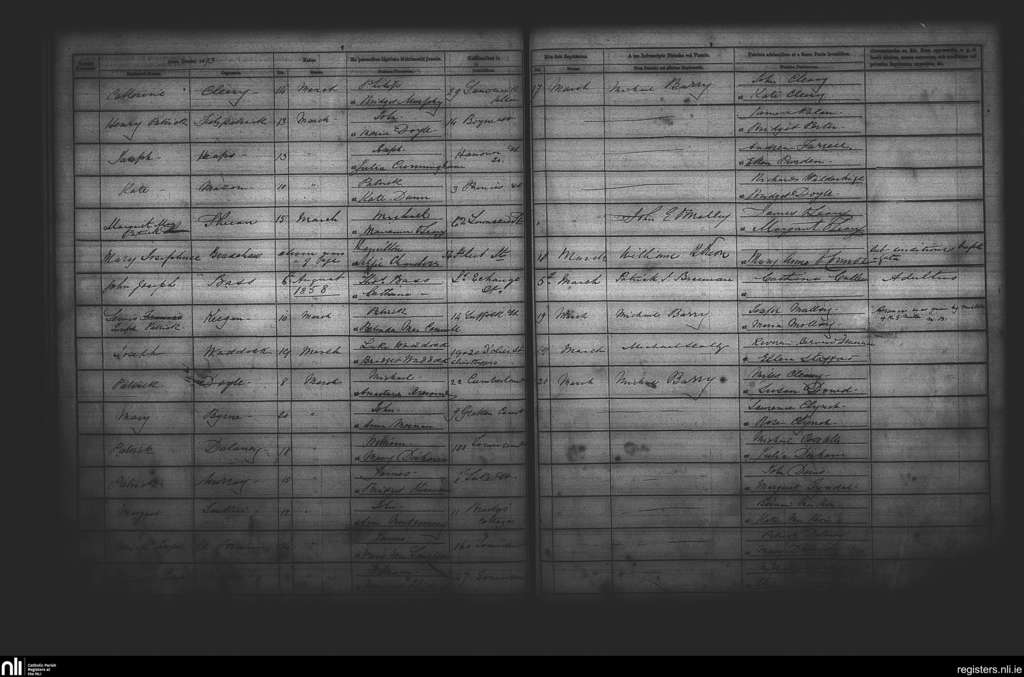 St. Andrew's, Dublin city; County of Dublin; Archdiocese of Dublin. Baptisms, Mar. 1873