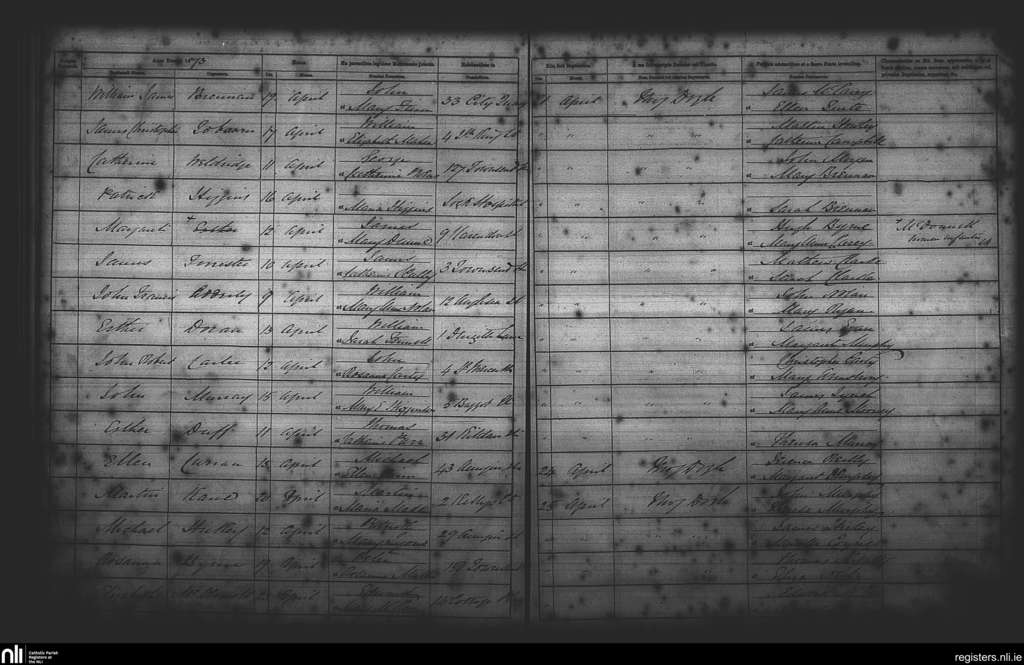 St. Andrew's, Dublin city; County of Dublin; Archdiocese of Dublin. Baptisms, Apr. 1873