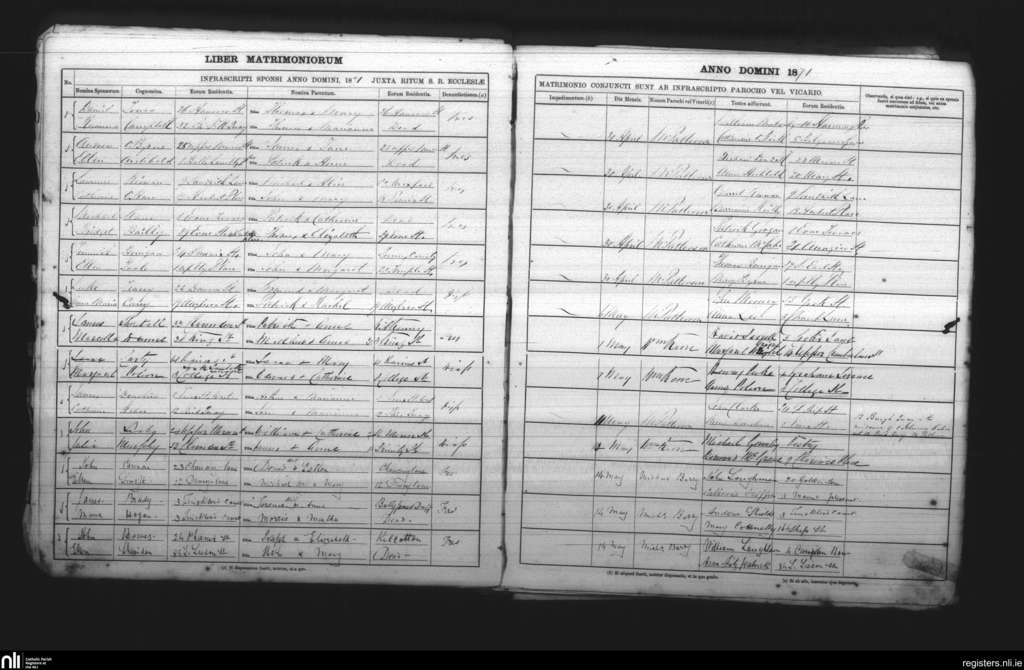 St. Andrew's, Dublin city; County of Dublin; Archdiocese of Dublin. Marriages, Apr. 1871 to May 1871