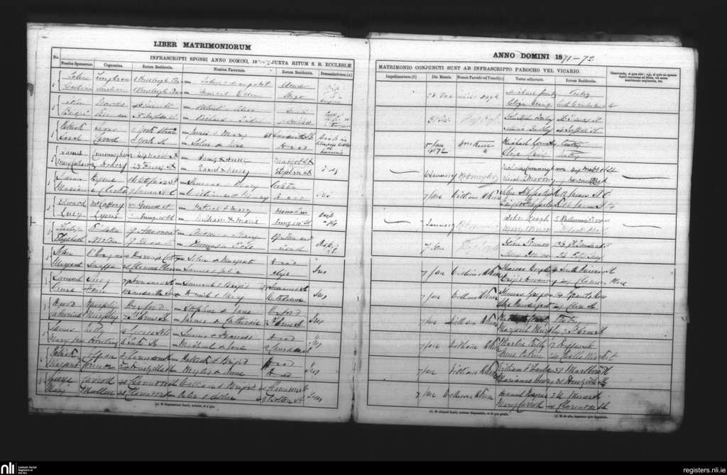 St. Andrew's, Dublin city; County of Dublin; Archdiocese of Dublin. Marriages, Dec. 1871 to Jan. 1872