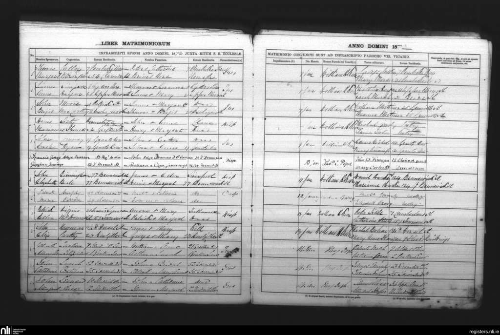 St. Andrew's, Dublin city; County of Dublin; Archdiocese of Dublin. Marriages, Jan. 1872
