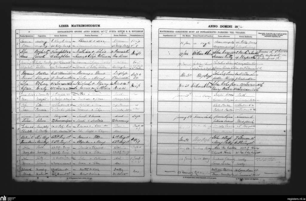 St. Andrew's, Dublin city; County of Dublin; Archdiocese of Dublin. Marriages, Jan. 1872