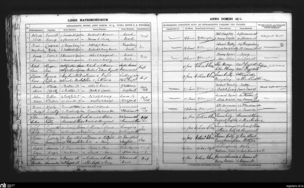 St. Andrew's, Dublin city; County of Dublin; Archdiocese of Dublin. Marriages, June 1872