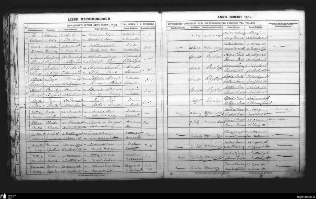 St. Andrew's, Dublin city; County of Dublin; Archdiocese of Dublin. Marriages, June 1872 to July 1872