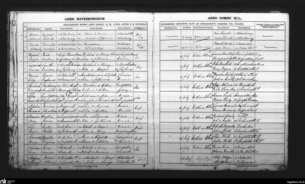 St. Andrew's, Dublin city; County of Dublin; Archdiocese of Dublin. Marriages, July 1872