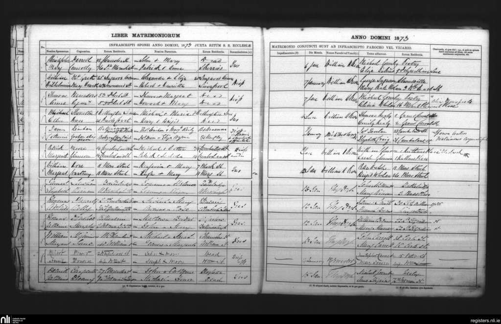 St. Andrew's, Dublin city; County of Dublin; Archdiocese of Dublin. Marriages, Jan. 1873
