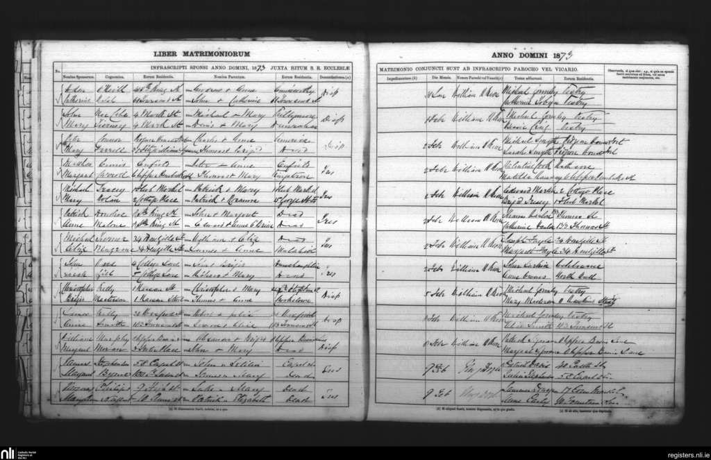 St. Andrew's, Dublin city; County of Dublin; Archdiocese of Dublin. Marriages, Jan. 1873 to Feb. 1873