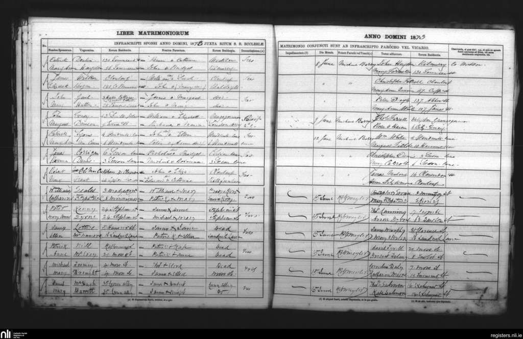 St. Andrew's, Dublin city; County of Dublin; Archdiocese of Dublin. Marriages, June 1873