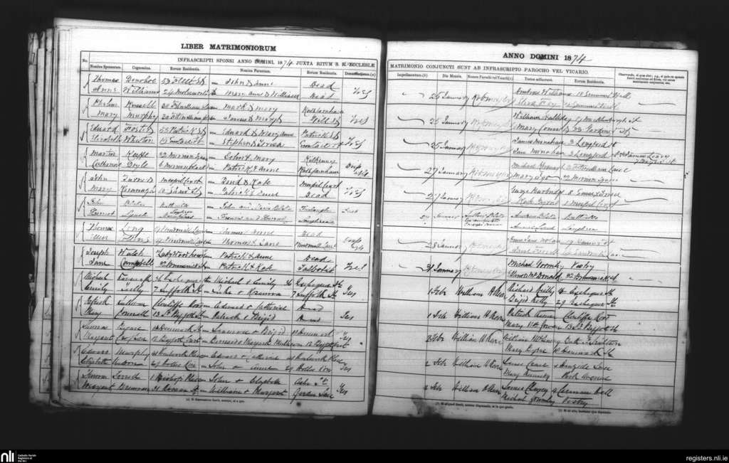 St. Andrew's, Dublin city; County of Dublin; Archdiocese of Dublin. Marriages, Jan. 1874 to Feb. 1874