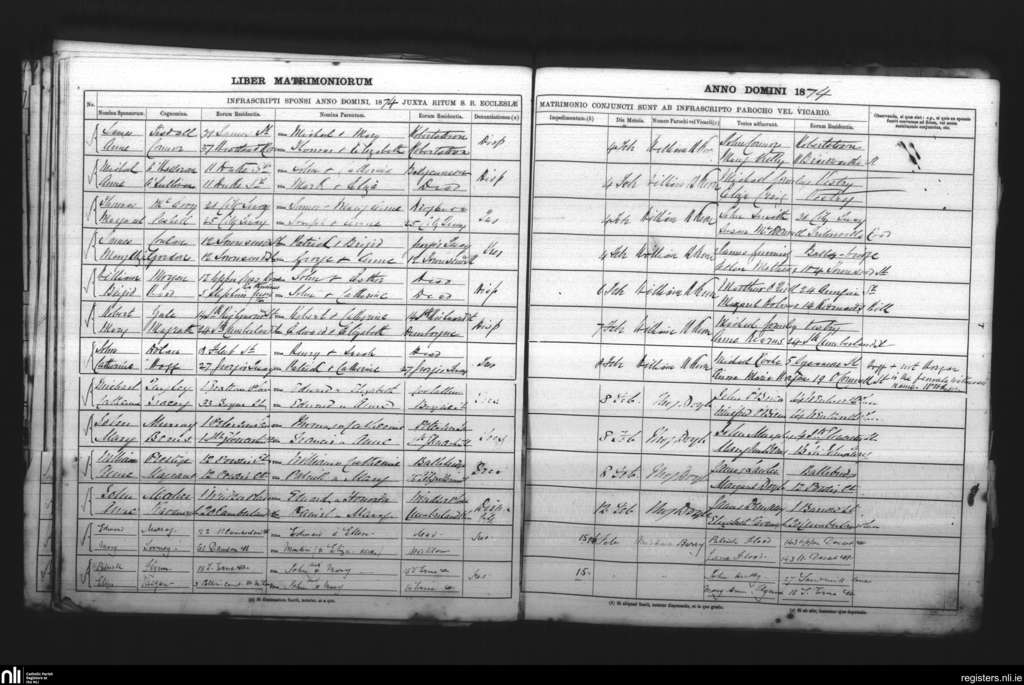 St. Andrew's, Dublin city; County of Dublin; Archdiocese of Dublin. Marriages, Feb. 1874