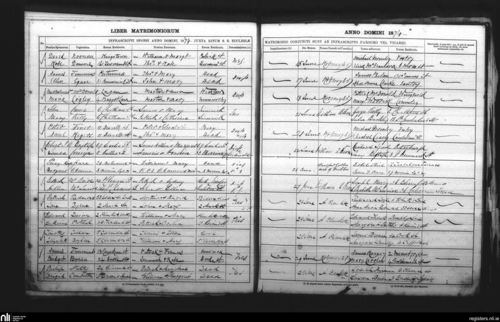 St. Andrew's, Dublin city; County of Dublin; Archdiocese of Dublin. Marriages, June 1874