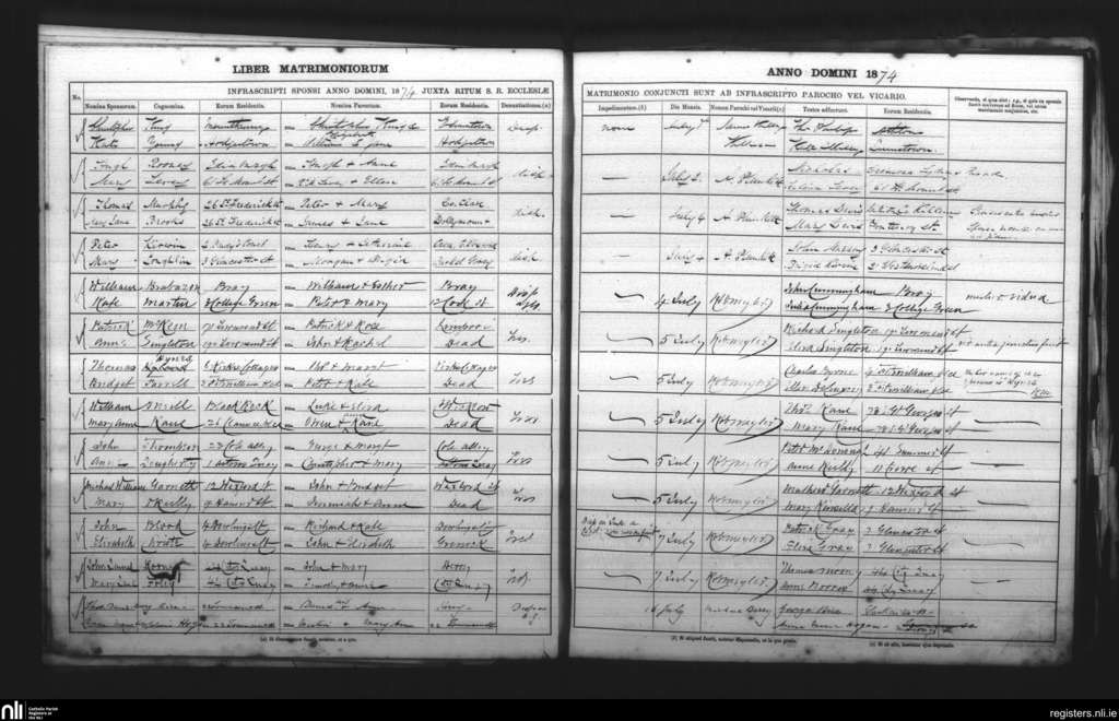 St. Andrew's, Dublin city; County of Dublin; Archdiocese of Dublin. Marriages, July 1874