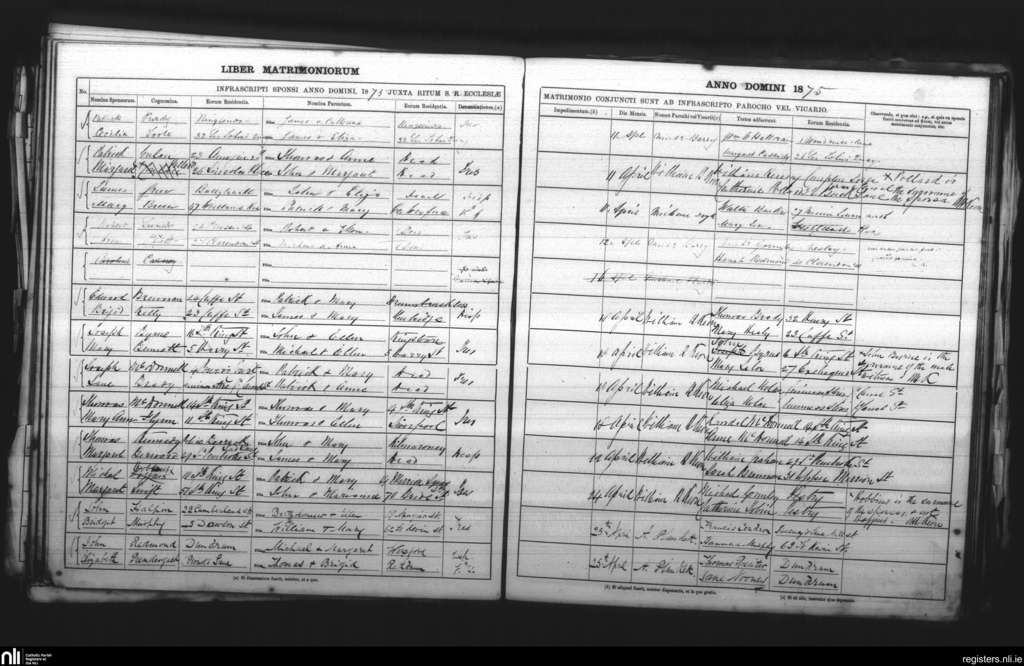 St. Andrew's, Dublin city; County of Dublin; Archdiocese of Dublin. Marriages, Apr. 1875
