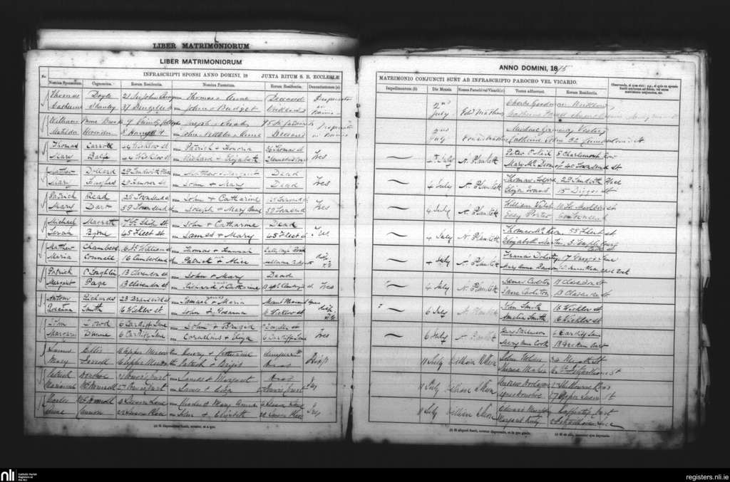 St. Andrew's, Dublin city; County of Dublin; Archdiocese of Dublin. Marriages, July 1875