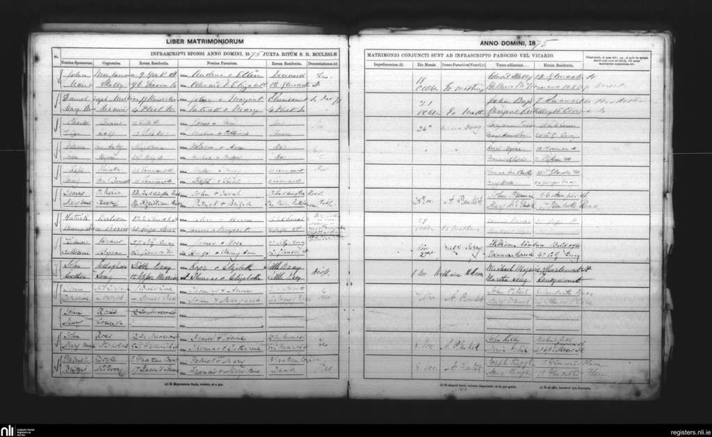 St. Andrew's, Dublin city; County of Dublin; Archdiocese of Dublin. Marriages, Oct. 1875 to Nov. 1875