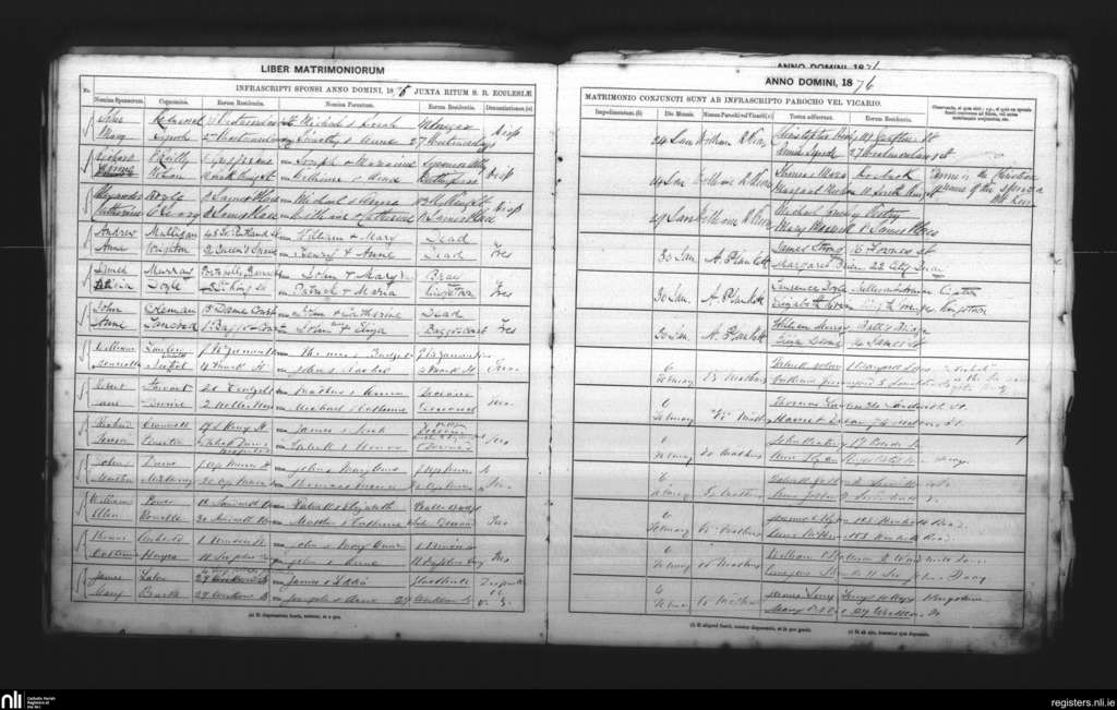 St. Andrew's, Dublin city; County of Dublin; Archdiocese of Dublin. Marriages, Jan. 1876 to Feb. 1876