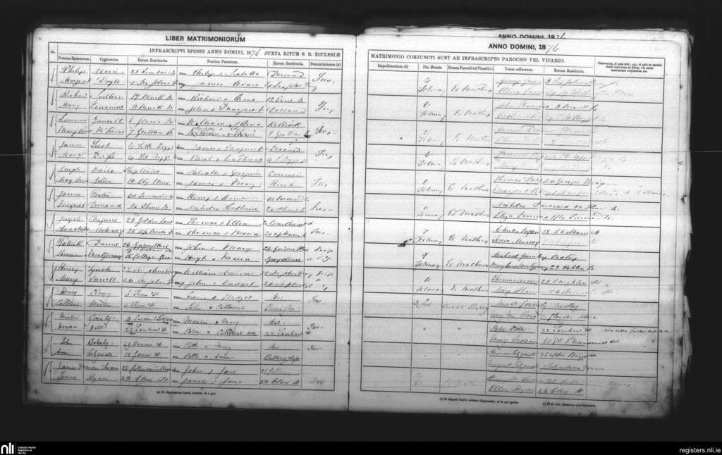 St. Andrew's, Dublin city; County of Dublin; Archdiocese of Dublin. Marriages, Feb. 1876