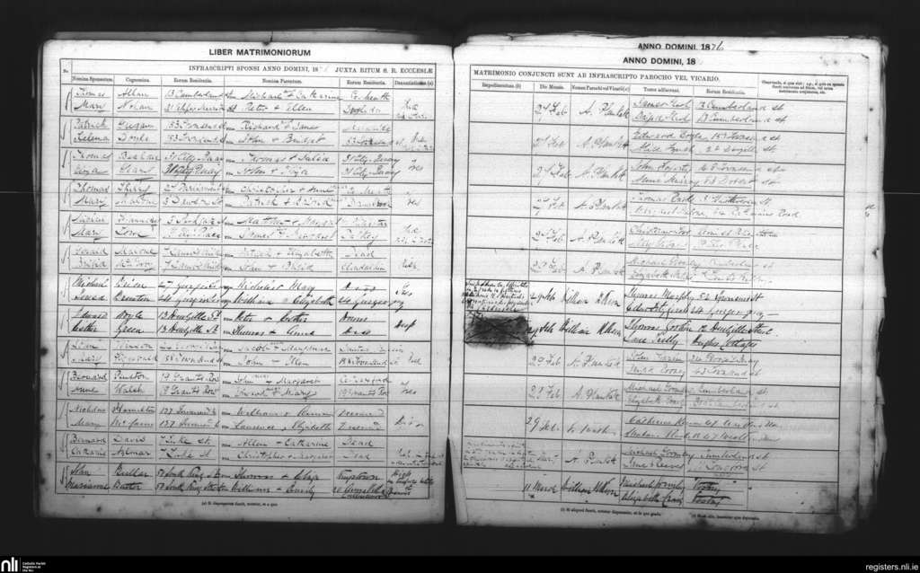St. Andrew's, Dublin city; County of Dublin; Archdiocese of Dublin. Marriages, Feb. 1876 to Mar. 1876