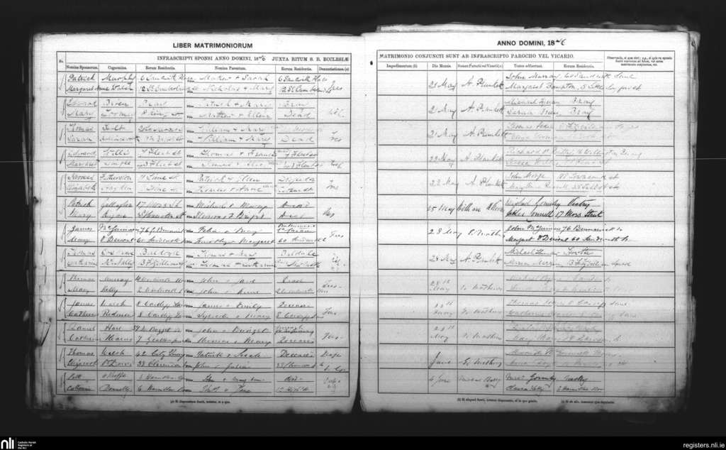 St. Andrew's, Dublin city; County of Dublin; Archdiocese of Dublin. Marriages, May 1876 to June 1876