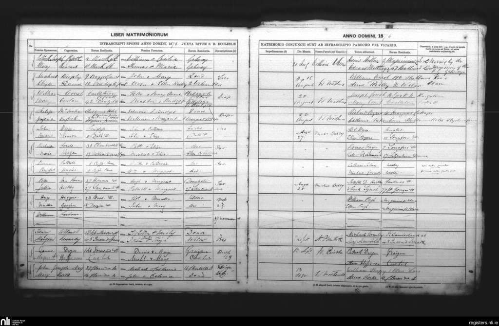 St. Andrew's, Dublin city; County of Dublin; Archdiocese of Dublin. Marriages, Aug. 1876 to Sep. 1876