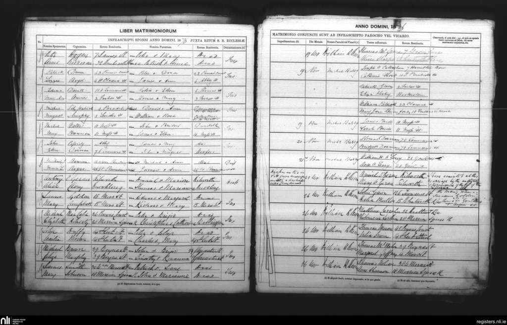 St. Andrew's, Dublin city; County of Dublin; Archdiocese of Dublin. Marriages, Nov. 1876
