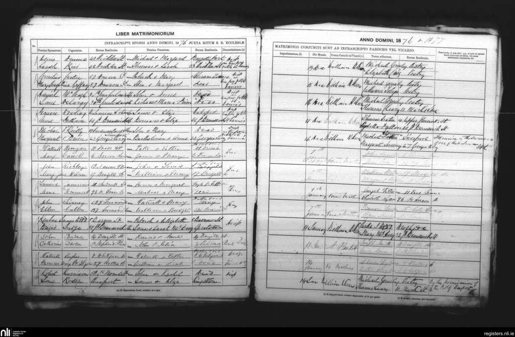 St. Andrew's, Dublin city; County of Dublin; Archdiocese of Dublin. Marriages, Dec. 1876 to Jan. 1877