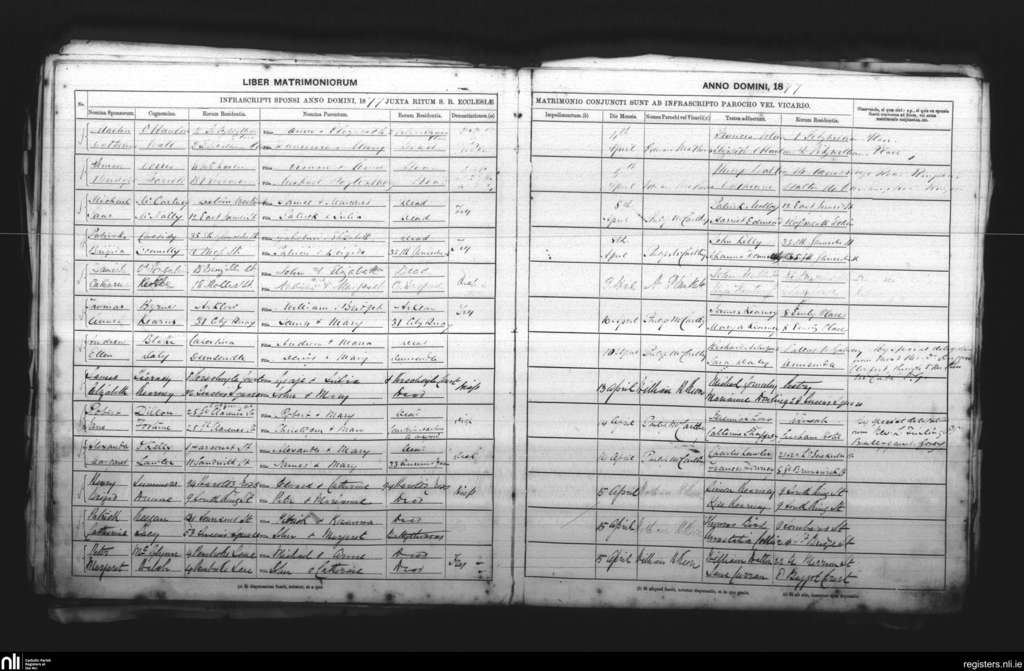 St. Andrew's, Dublin city; County of Dublin; Archdiocese of Dublin. Marriages, Apr. 1877