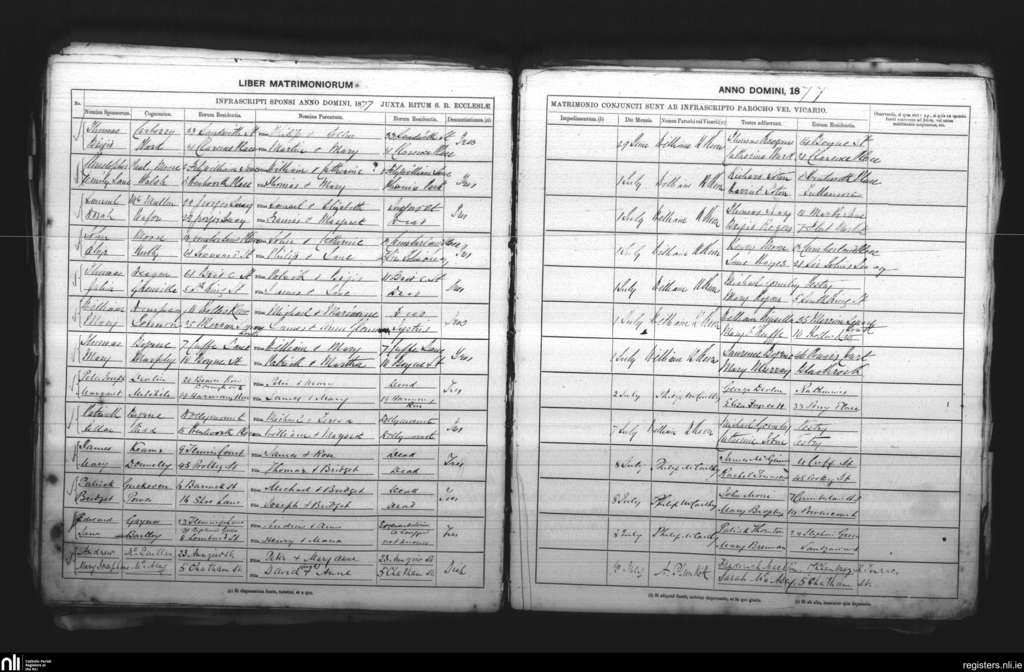 St. Andrew's, Dublin city; County of Dublin; Archdiocese of Dublin. Marriages, June 1877 to July 1877
