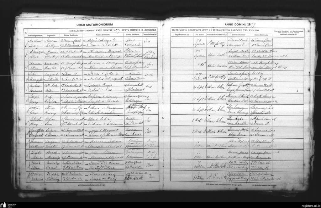 St. Andrew's, Dublin city; County of Dublin; Archdiocese of Dublin. Marriages, Sep. 1877 to Oct. 1877