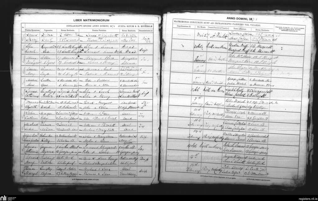 St. Andrew's, Dublin city; County of Dublin; Archdiocese of Dublin. Marriages, Feb. 1878