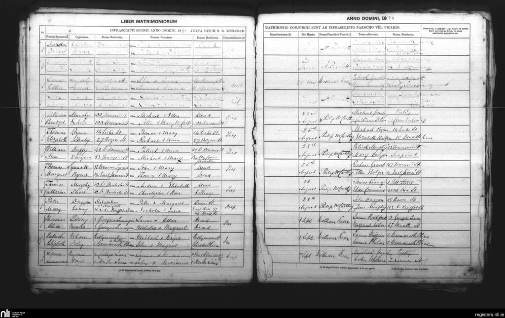 St. Andrew's, Dublin city; County of Dublin; Archdiocese of Dublin. Marriages, Aug. 1878 to Sep. 1878
