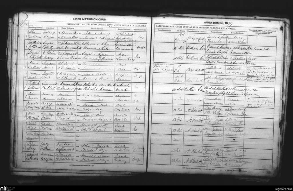 St. Andrew's, Dublin city; County of Dublin; Archdiocese of Dublin. Marriages, Feb. 1879